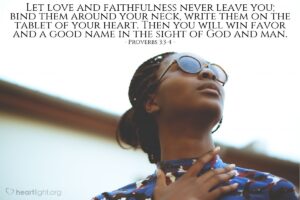 Let love and faithfulness never leave you; bind them around your neck, write them on the tablet of your heart. Then you will win favor and a good name in the sight of God and man.
