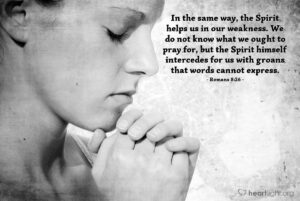 In the same way, the Spirit helps us in our weakness. We do not know what we ought to pray for, but the Spirit himself intercedes for us with groans that words cannot express.