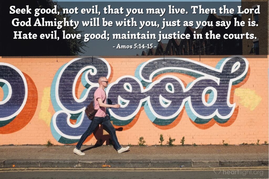 Seek good, not evil, that you may live. Then the Lord God Almighty will be with you, just as you say he is. Hate evil, love good; maintain justice in the courts.
