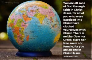 You are all sons of God through faith in Christ Jesus, for all of you who were baptized into Christ have clothed yourselves with Christ. There is neither Jew nor Greek, slave nor free, male nor female, for you are all one in Christ Jesus.