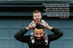 These commandments that I give you today are to be upon your hearts. Impress them on your children. Talk about them when you sit at home and when you walk along the road, when you lie down and when you get up.